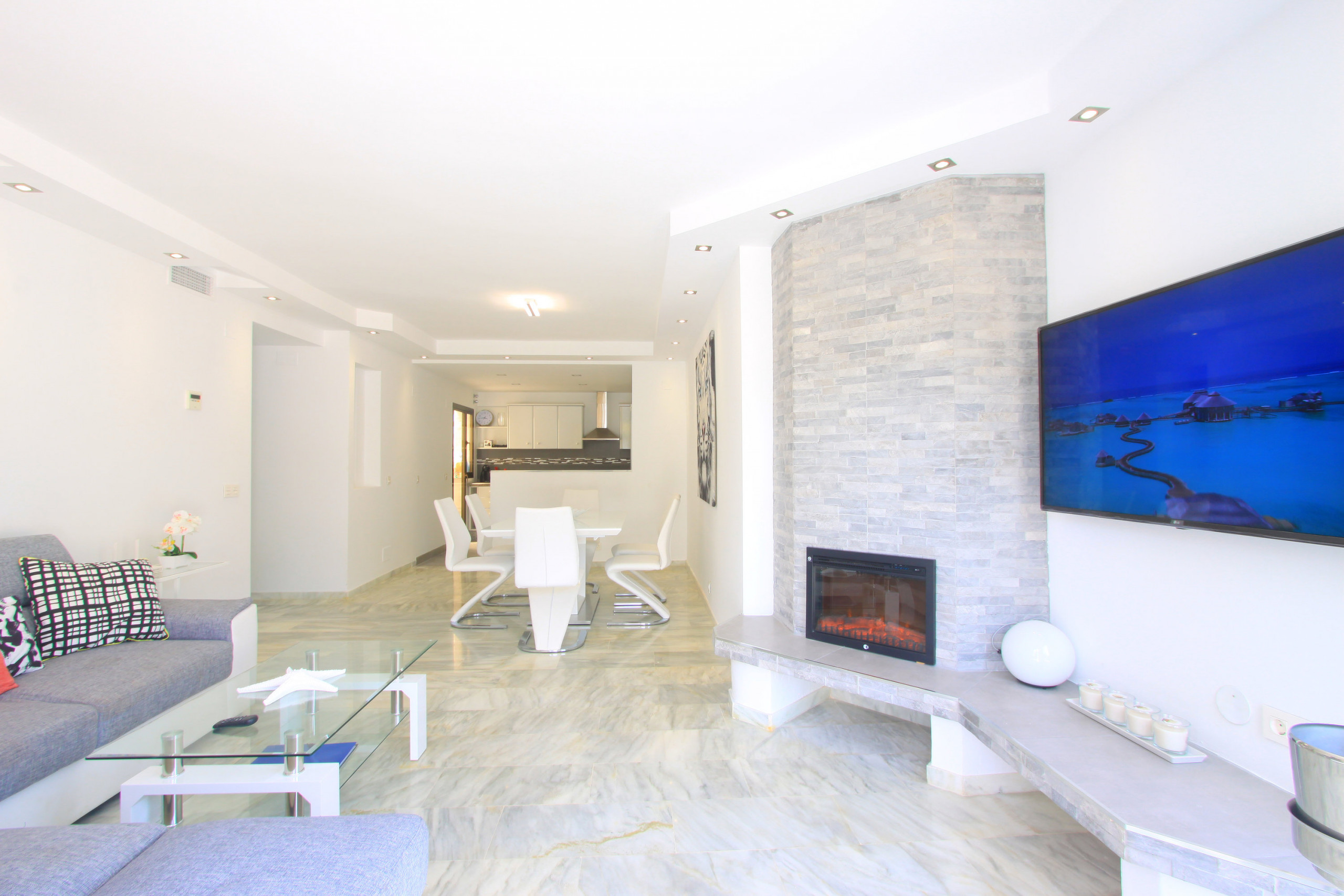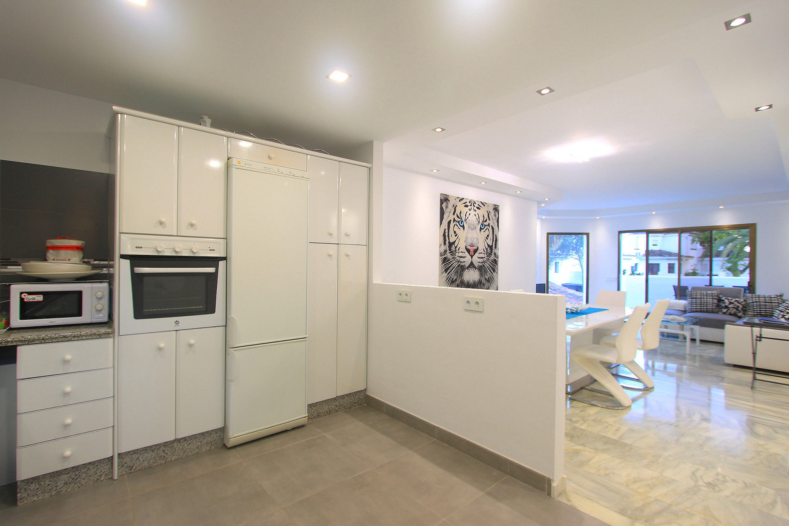 Tilbyder have, terrassemøbler, indhegnet grund, terrasse 20 m², vaskemaskine, tørretumbler, grill, kamin, strygejern, internet (wifi), hårtørrer, børneområde, fitnesscenter, centralvarme, aircondition, swimming pool communal infantile, garage til i bygning tæt på, 1 TV, satellit (Sprog: Spansk, Engelsk, Tysk).
