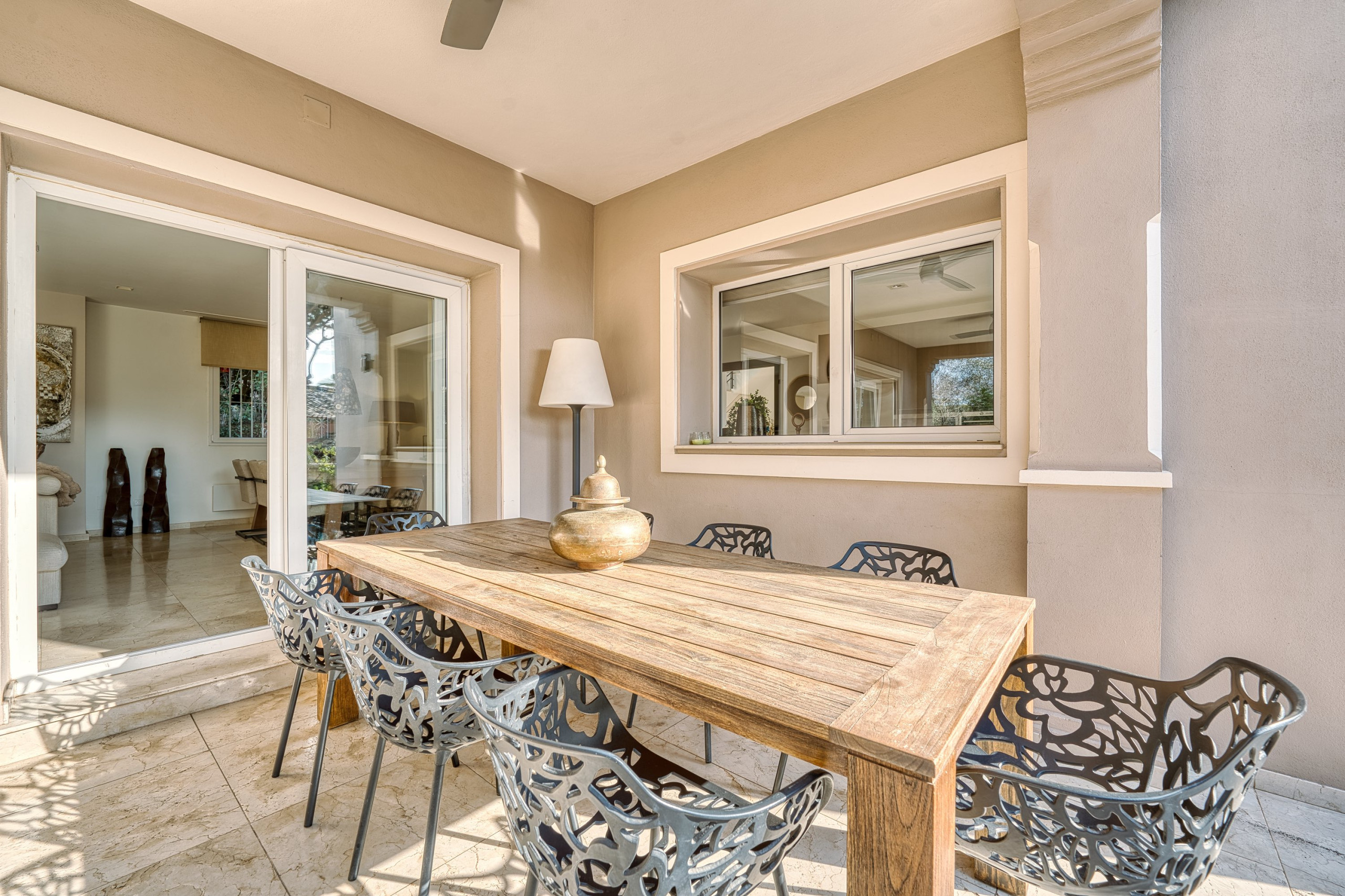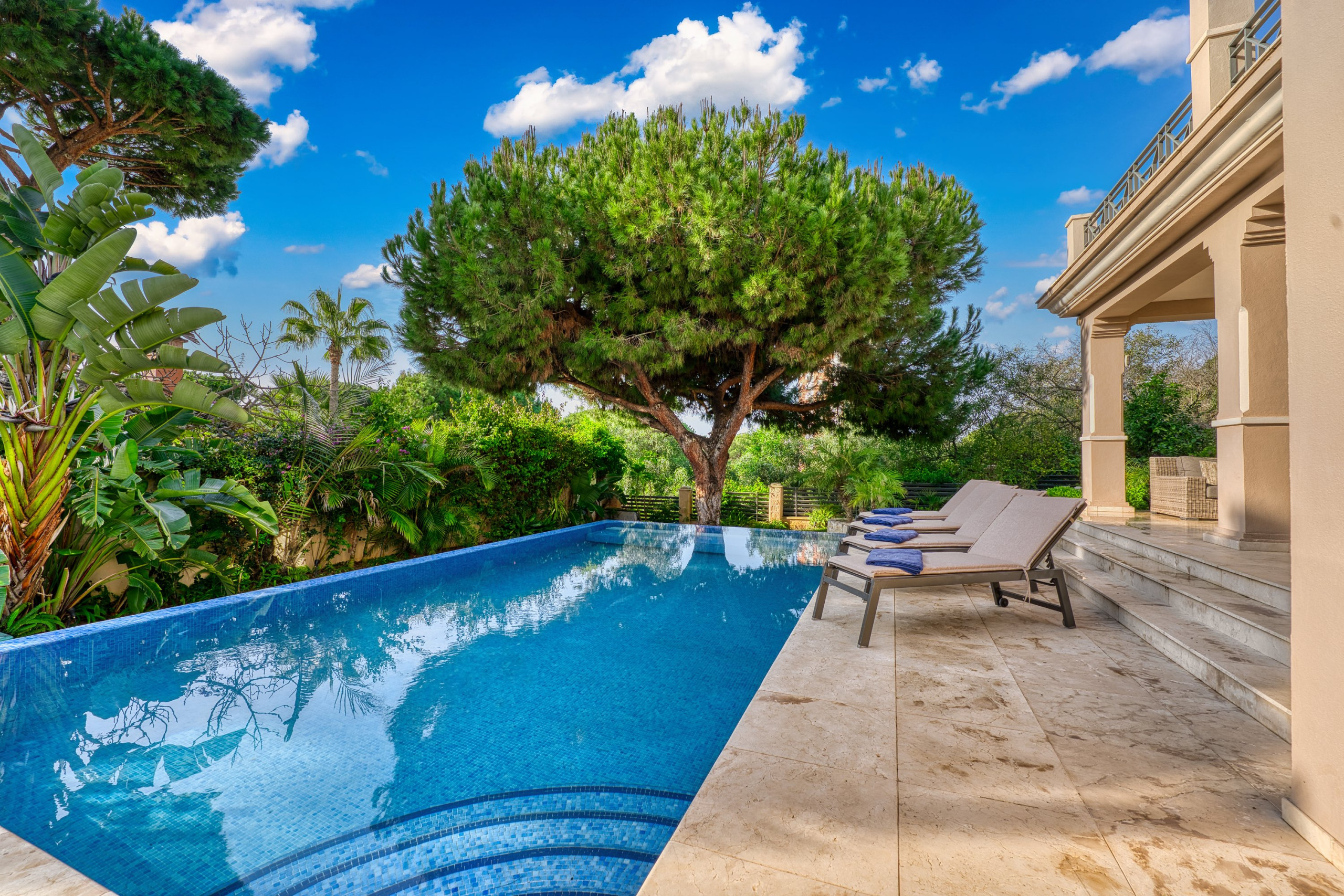 Tilbyder have, terrassemøbler, indhegnet grund, terrasse 150 m², vaskemaskine, tørretumbler, grill, kamin, strygejern, pengeskab, internet (wifi), hårtørrer, altan, alarm, centralvarme, aircondition, swimming pool privat, utildækket parkering til den samme bygning, 3 Fjernsyn, satellit.