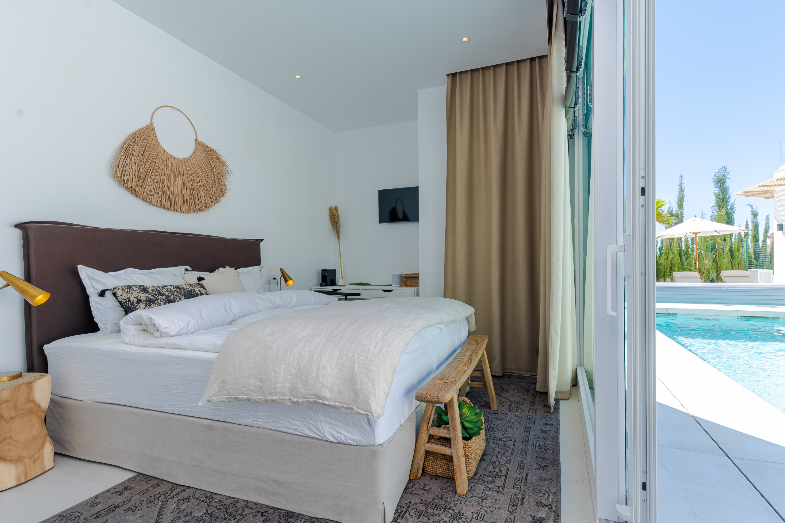 Denne villa har højt til loftet og store varmebestandige vinduer, hvilket gør, at den føles rummelig og lys. Derudover giver designet mulighed for problemfri integration af indendørs og udendørs opholdsrum, hvilket gør det til et perfekt sted at nyde BlueSky Riviera.