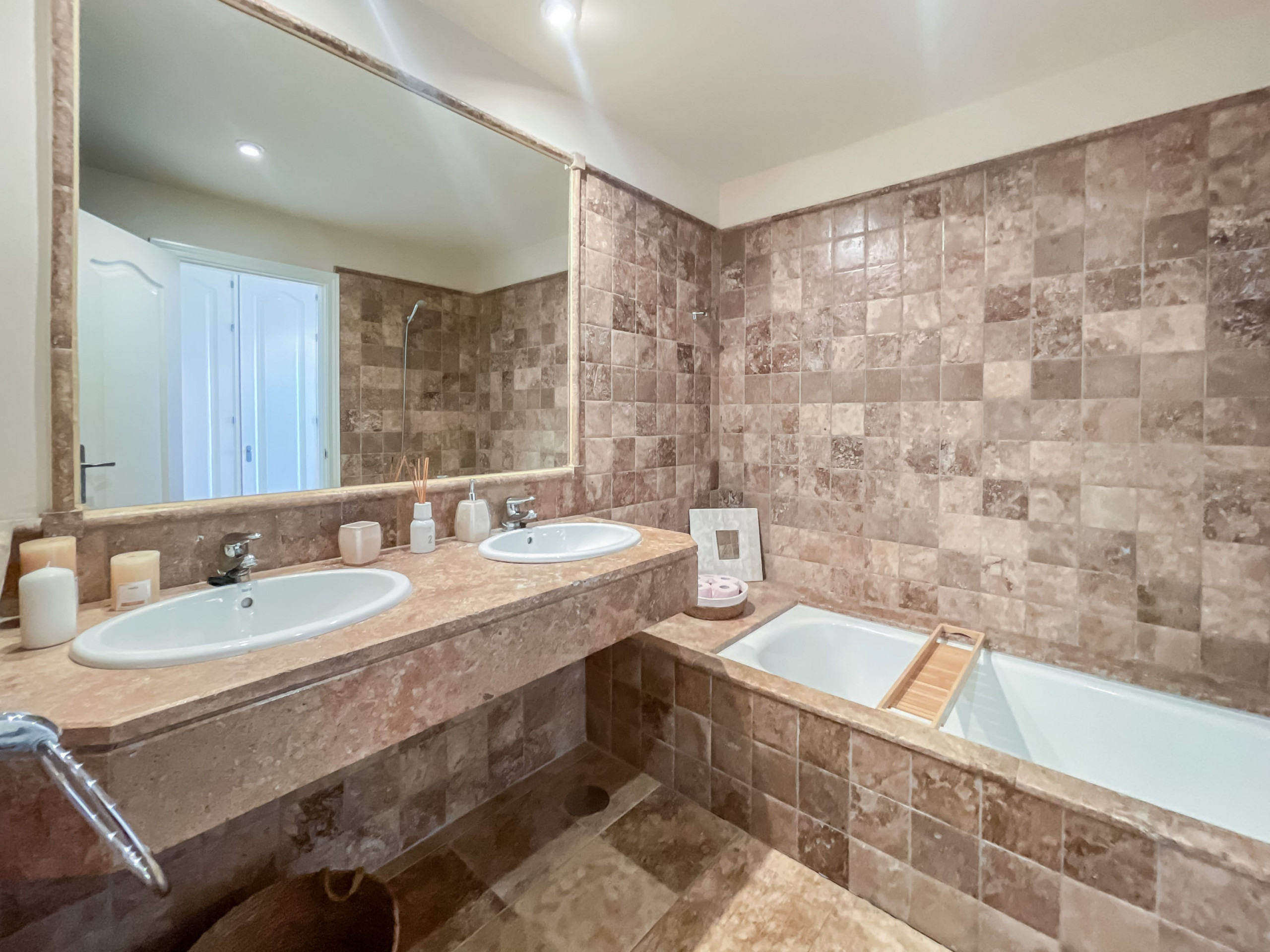 De tweede slaapkamer heeft twee eenpersoonsbedden en er is een tweede volledige badkamer. Beide badkamers hebben vloerverwarming.
