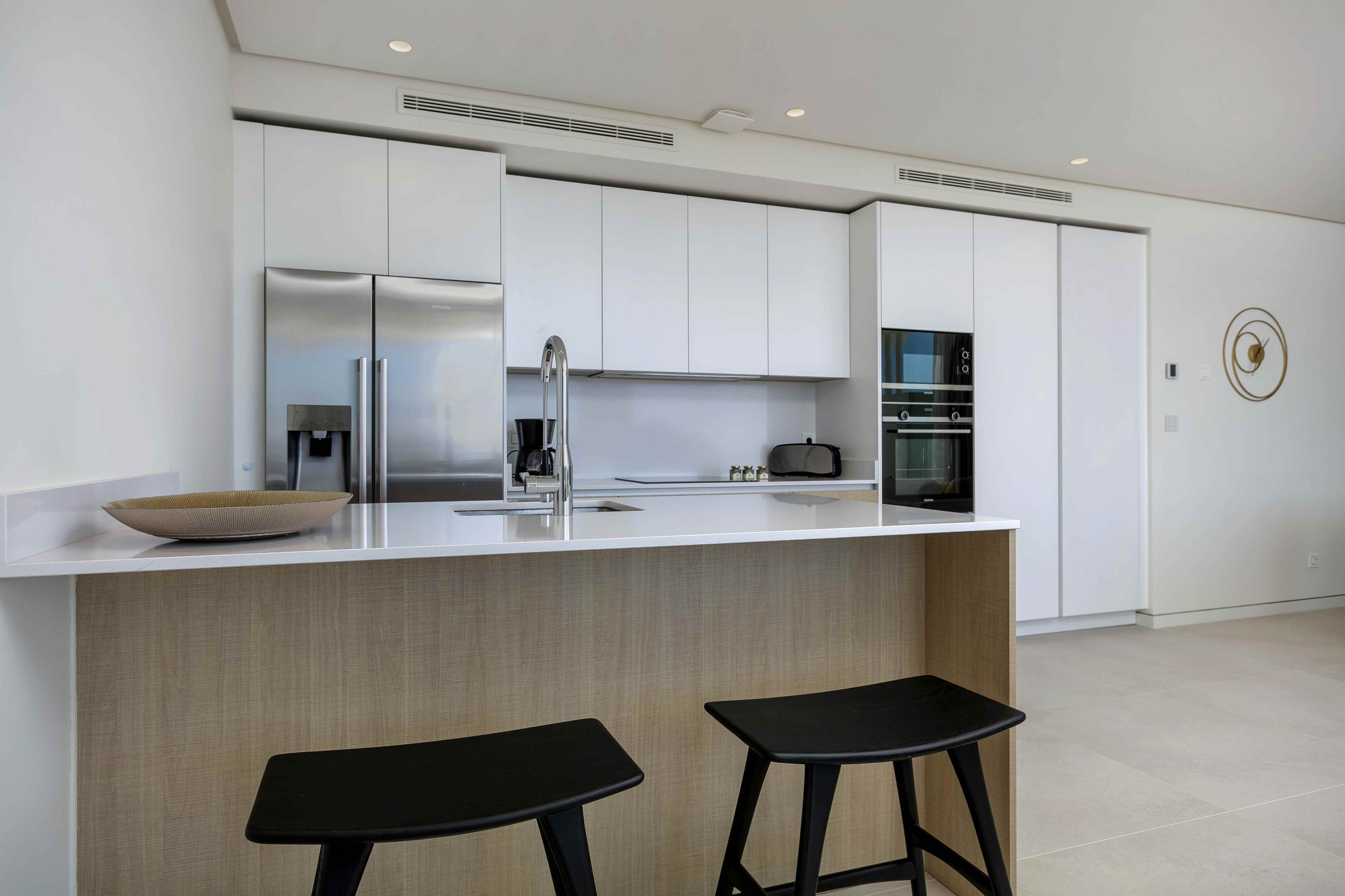 De open keuken, met inductie kookplaat, is uitgerust met koelkast, magnetron, oven, vriezer, vaatwasmachine, servies/bestek, keukengerei, koffiezetapparaat, broodrooster, waterkoker en sapcentrifuge.