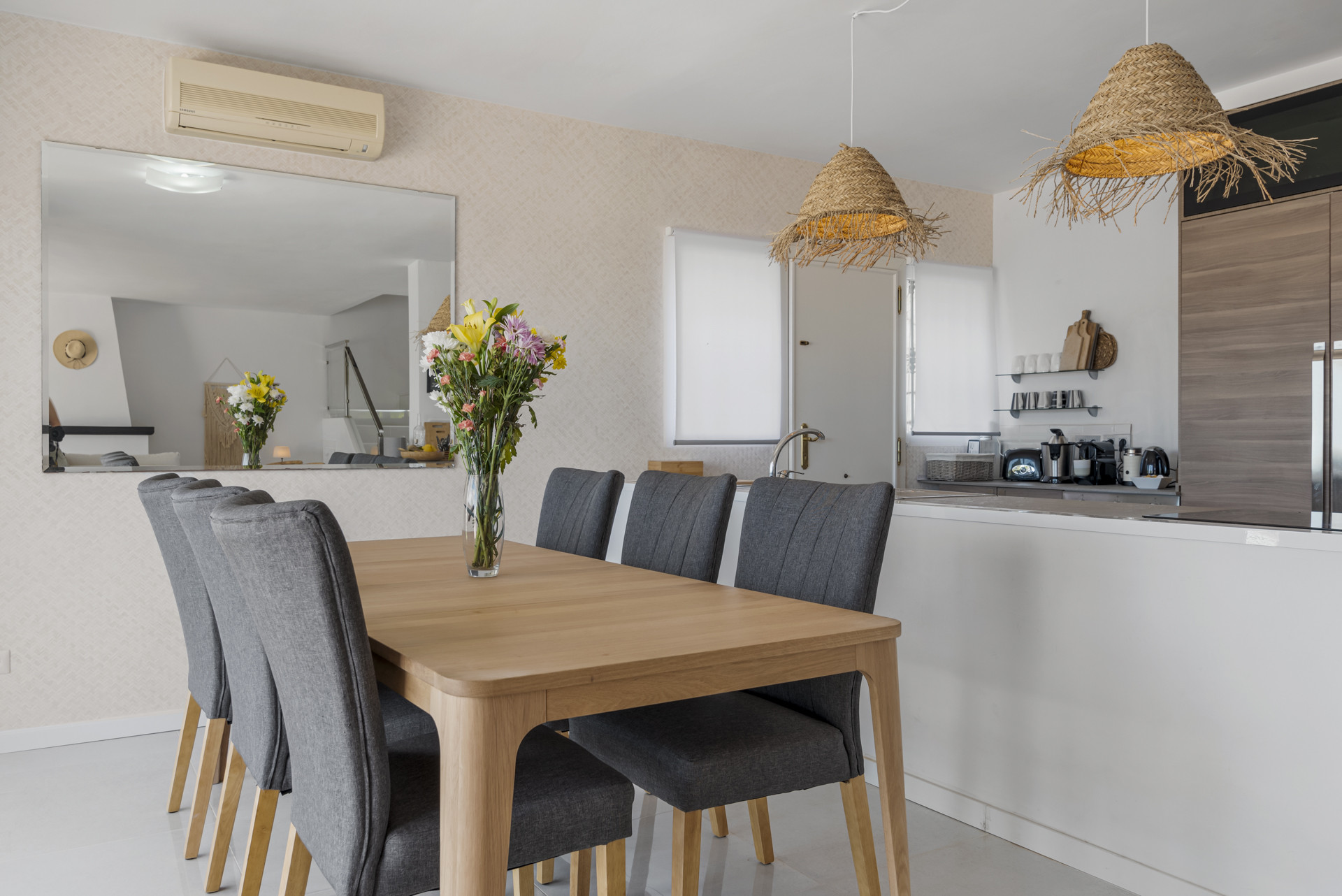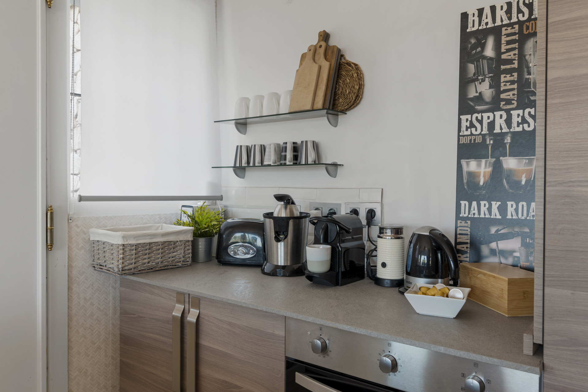 De open keuken, is uitgerust met koelkast, magnetron, oven, vriezer, servies/bestek, keukengerei, koffiezetapparaat, broodrooster, waterkoker en sapcentrifuge.