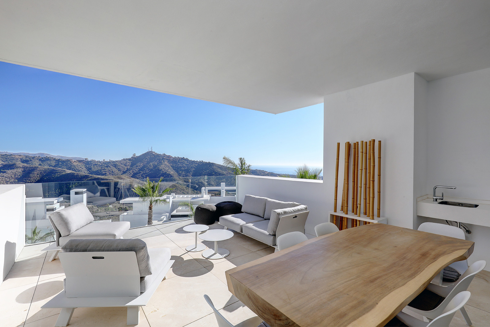 Otro punto a destacar es la amplia terraza con vistas panorámicas al Mediterráneo, ideal para relajarse y disfrutar. El aire acondicionado y la calefacción por suelo radiante en toda la propiedad garantizan temperaturas agradables durante todo el año.