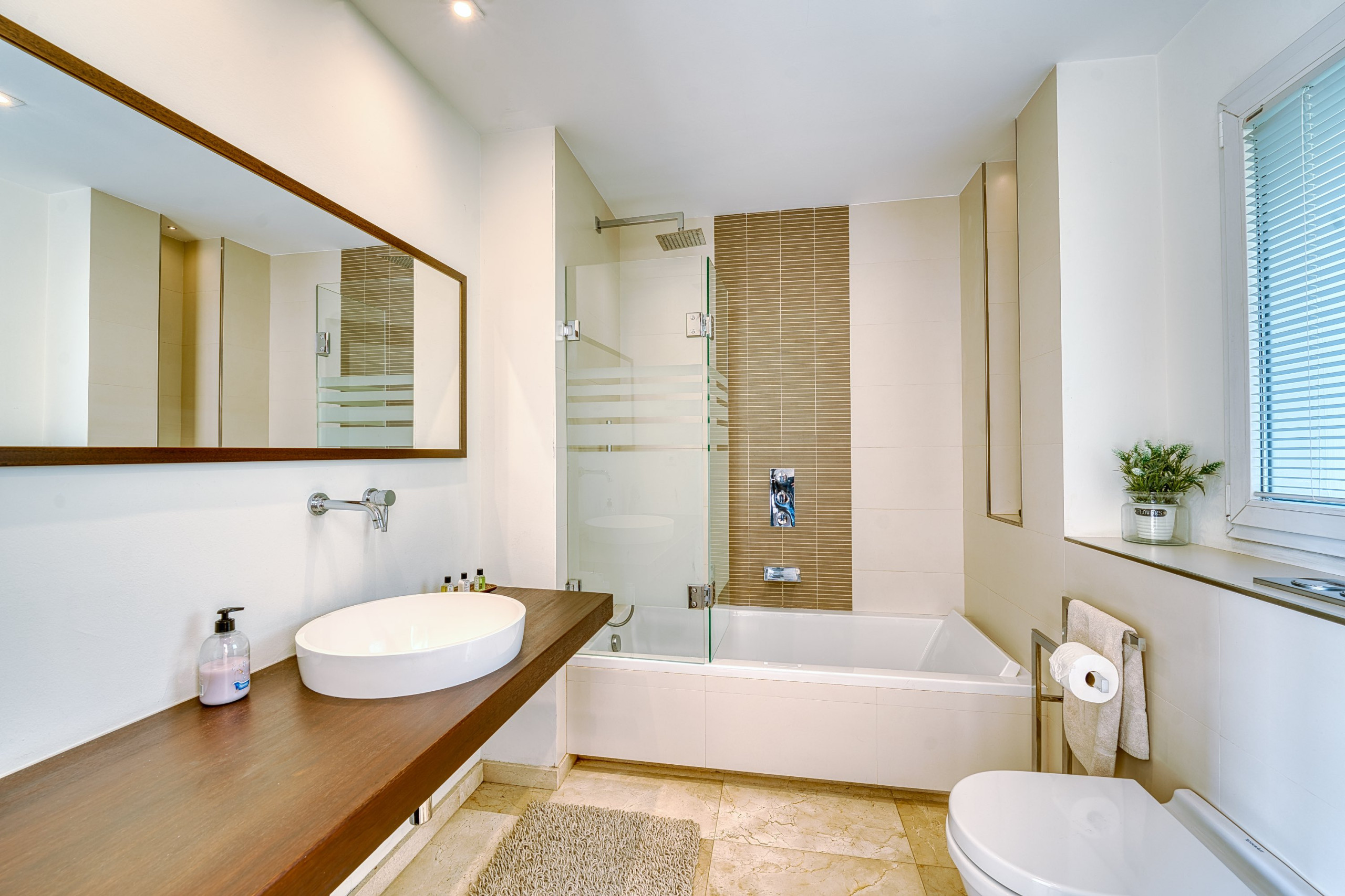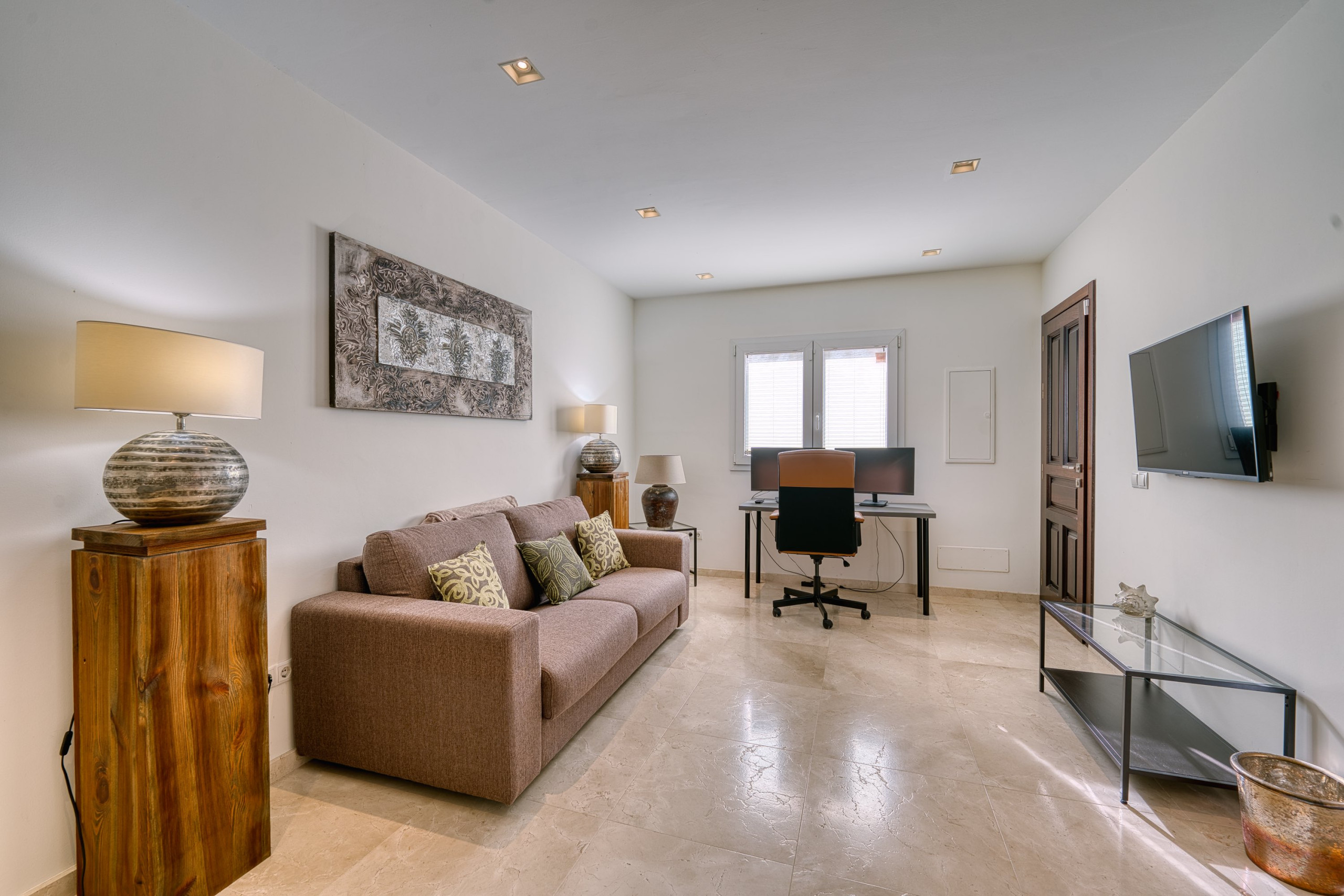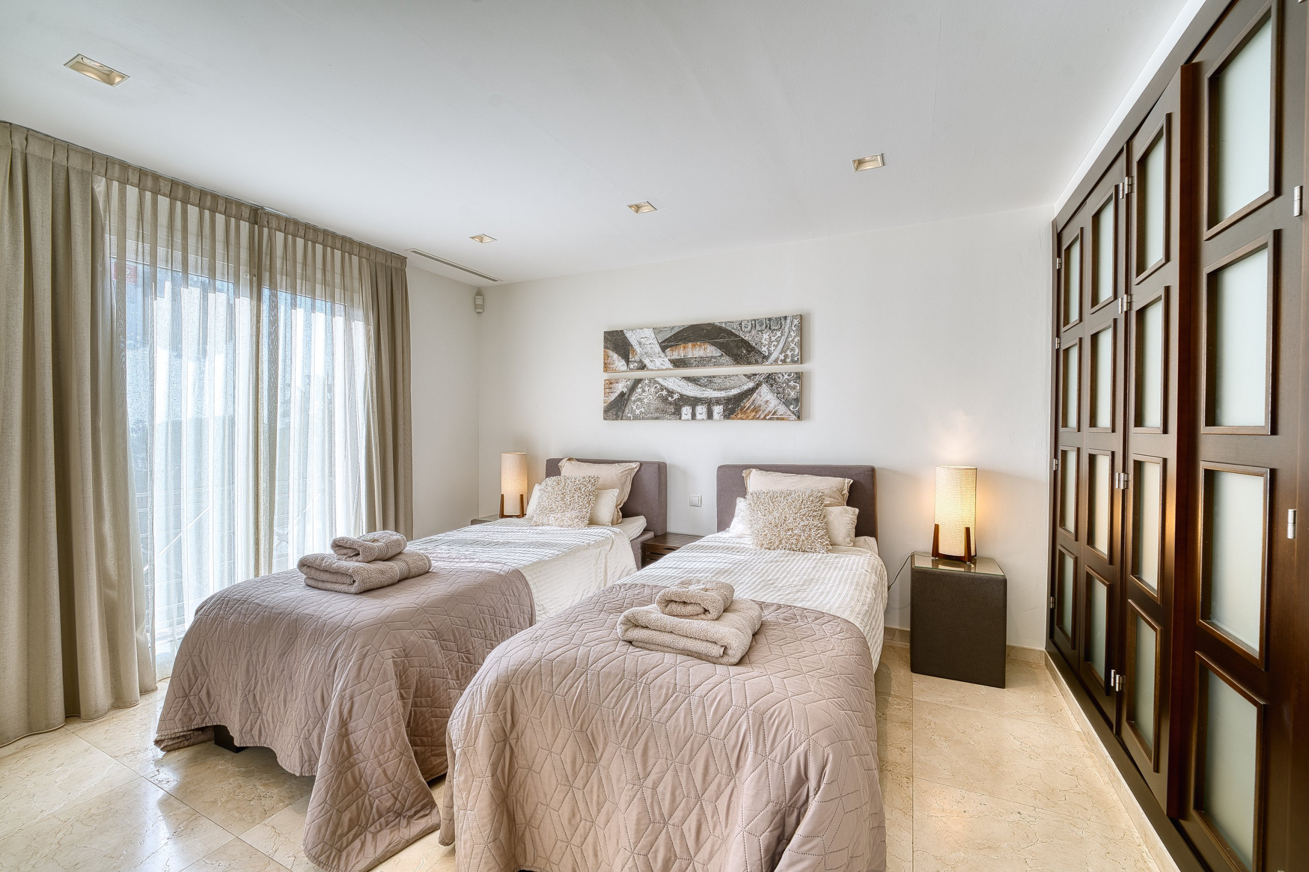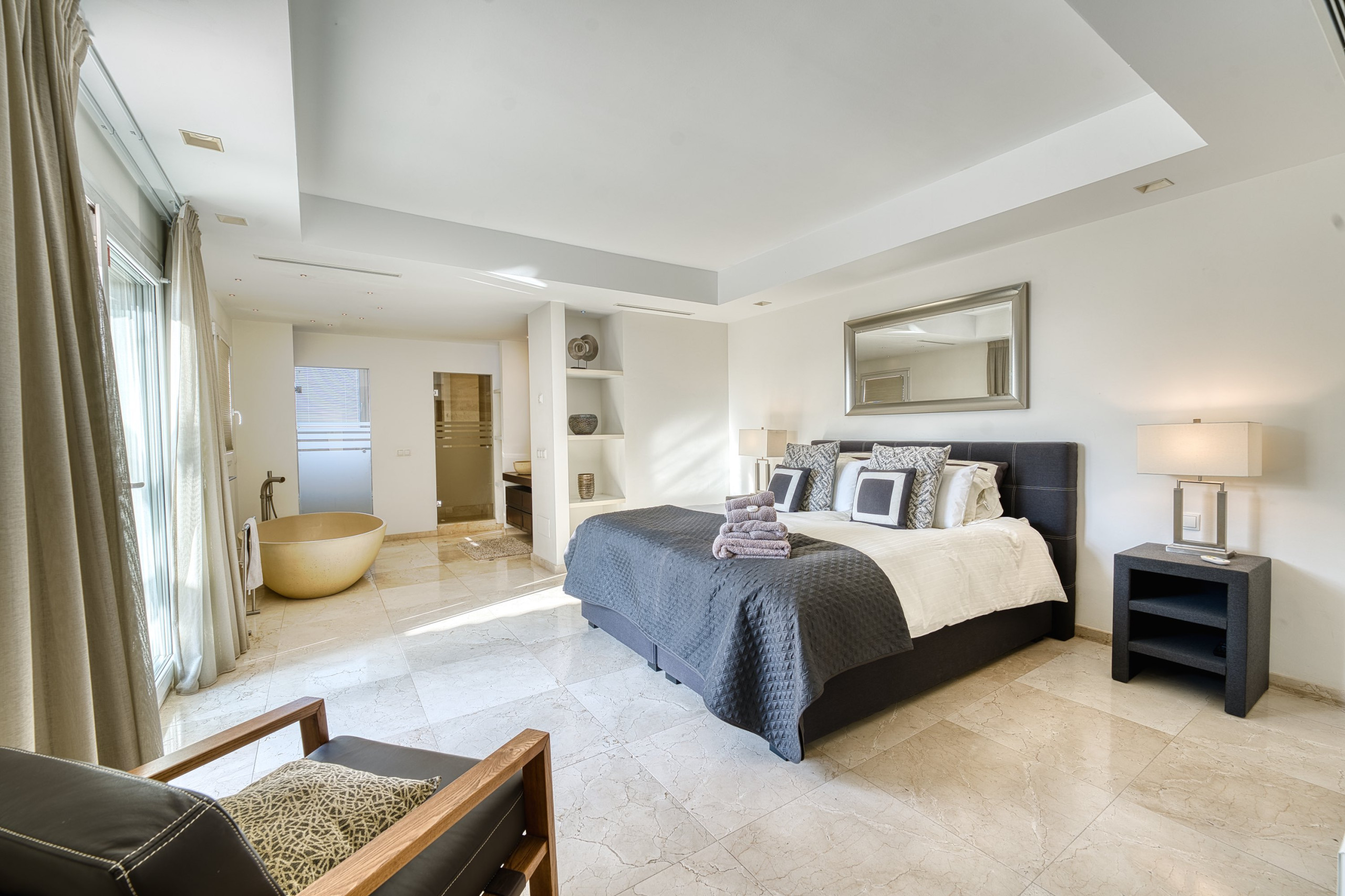 Villa Luci cuenta con dos elegantes dormitorios dobles en la segunda planta, cada uno con una cama super king size (180x200cm) y baño en suite, así como un dormitorio con dos camas individuales y baño en suite. La opulenta suite principal también cuenta con una terraza privada con bonitas vistas al resplandeciente mar Mediterráneo. El cuarto dormitorio, situado en la planta baja, ofrece una suite familiar con una cama king-size y un salón estudio contiguo equipado con un sofá cama de calidad, una pequeña cocina y un televisor. A esta suite privada también se puede acceder a través de una entrada independiente desde el jardín, lo que garantiza una mayor privacidad.