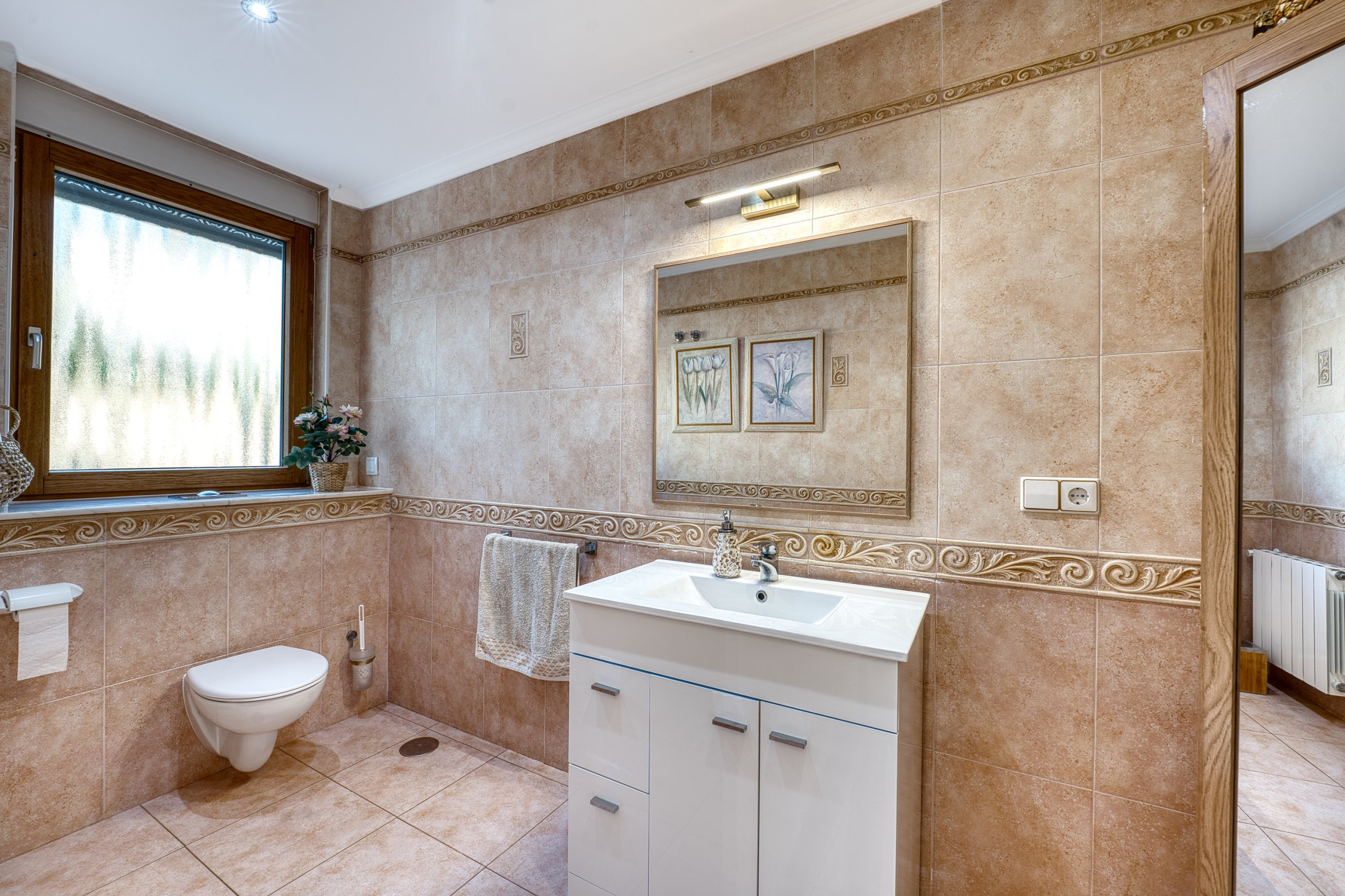 La villa cuenta con 8 espaciosas habitaciones, 6 de ellas con baño privado, lo que garantiza la intimidad y el confort de todos los huéspedes. Las modernas instalaciones incluyen aire acondicionado y calefacción con control individual en cada habitación, proporcionando lo último en confort personalizado. Con dos entradas -una desde la avenida principal y otra desde el lado del campo de golf- y un amplio aparcamiento para hasta cinco coches, la comodidad está asegurada.
