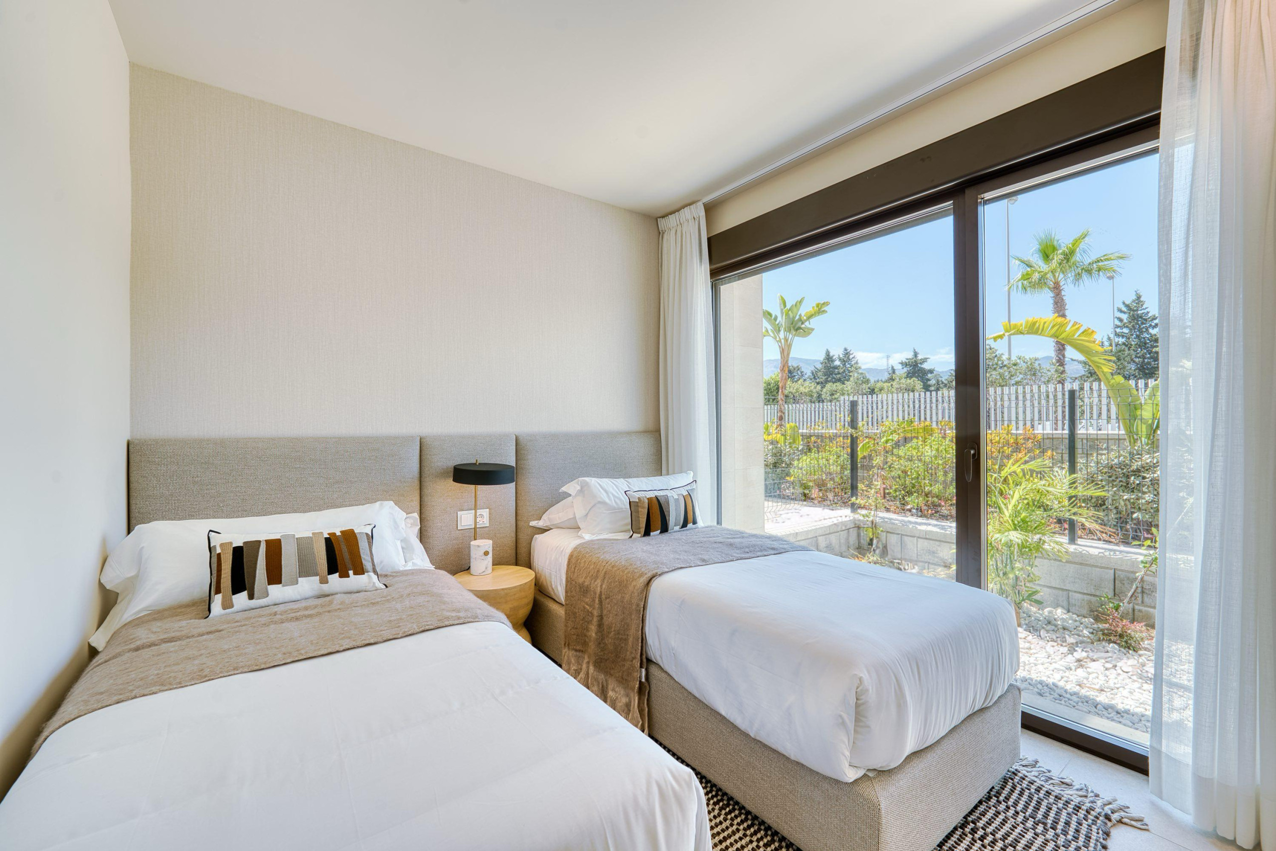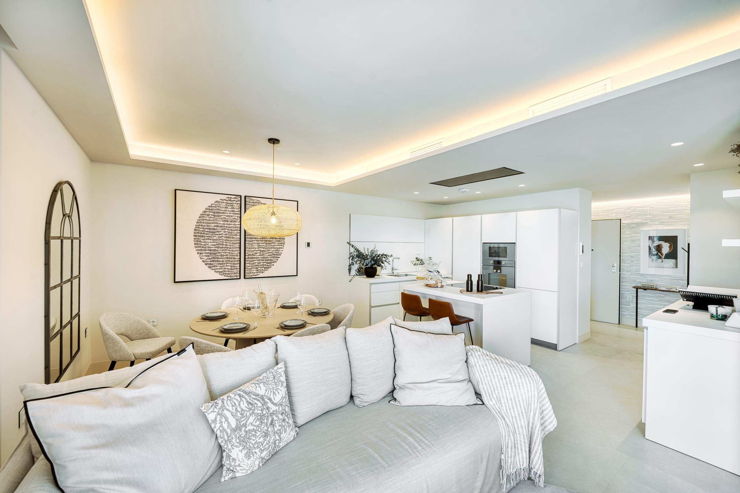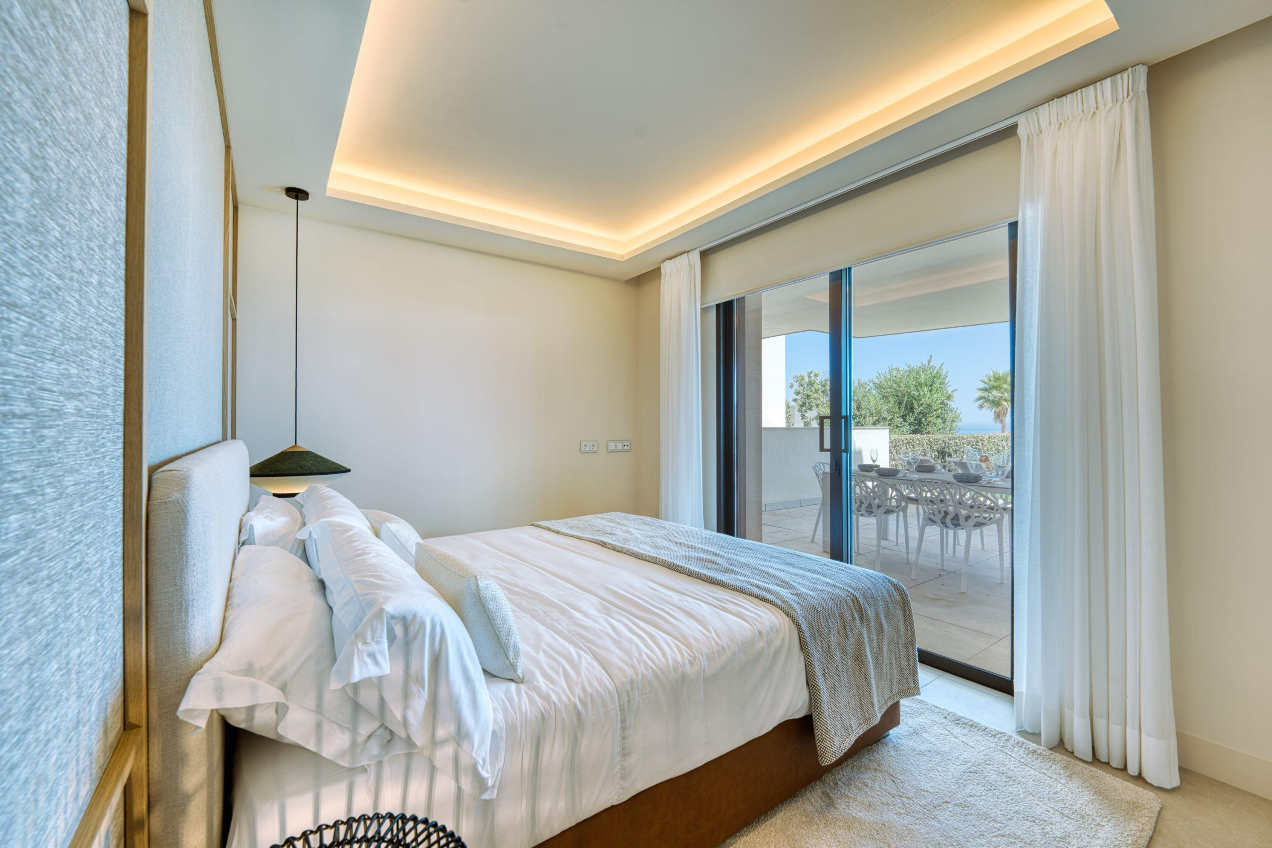 This brand-new home offers spectacular sea views and comes fully furnished with top-quality finishes. Inside, you’ll find an elegant living space with an open-plan kitchen fitted with Gaggenau appliances and a large island, perfect for cooking and entertaining. There are three refined bedrooms, including a principal suite that features direct access to the terrace, a dressing area, and a luxurious ensuite bathroom with a separate bath and walk-in shower. In addition, there is a second bedroom with its own ensuite and a third bedroom with access to a stylish family bathroom. The property also includes electric blinds, underfloor heating, full air conditioning, and a separate laundry room for added convenience.
